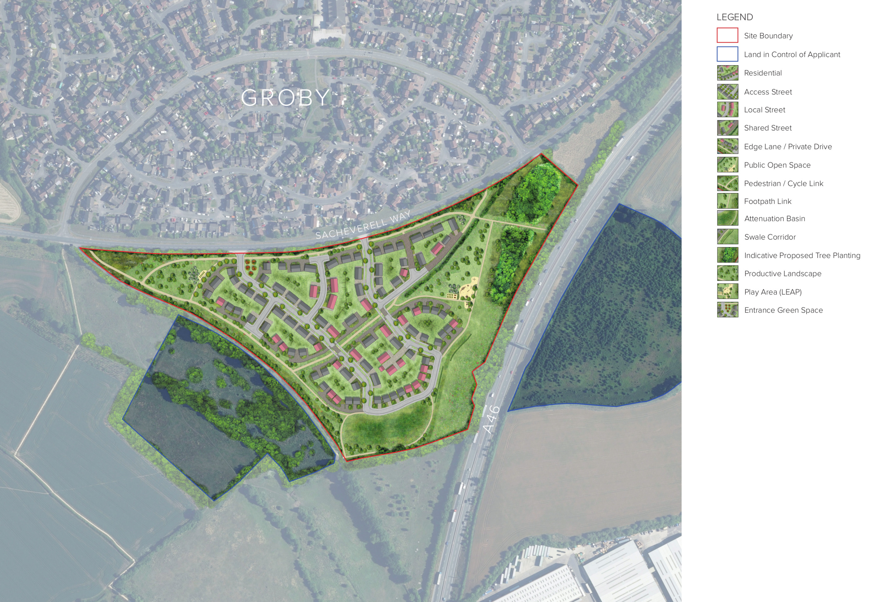 - Safe and convenient vehicular, cycle and pedestrian access via two junctions with Sacheverell Way.